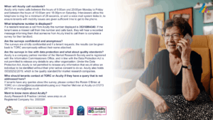 Residents will receive an email invitation from Acuity with a link to complete the survey online. A small number will also receive a phone call from Acuity (number displayed: 35316994340) to take part over the phone.